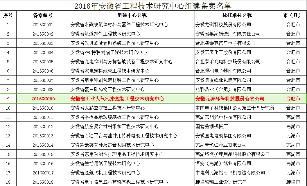 热烈祝贺suncitygroup太阳集团环保获得《安徽省工程技术研究中心》荣誉